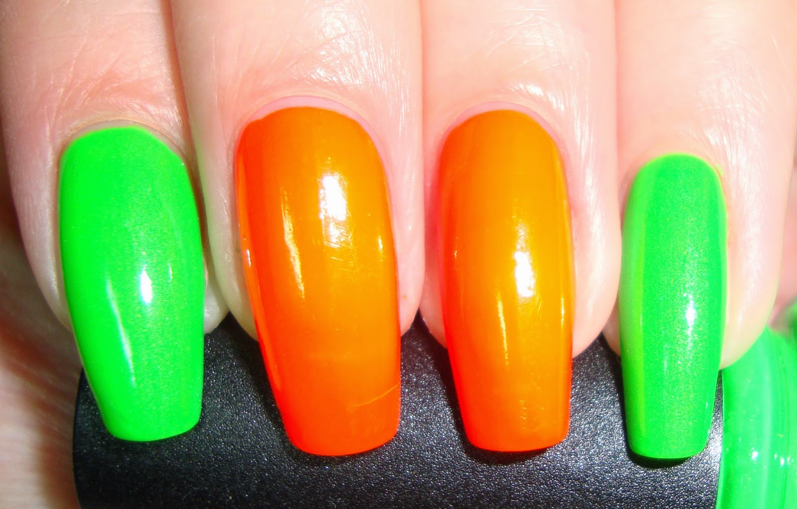 По ТТХ лаки идентичные. #101 - морковно-оранжевый неон, а #109 - салатово-зеленый с мельчайшим шиммером, заметным только в бутылочке (на ногтях же его совсем не видно).